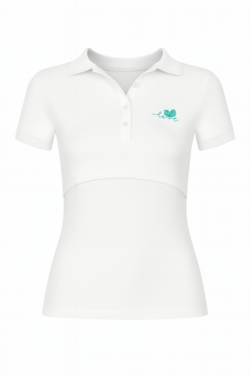 Blusa maternidad - lactancia Tipo Polo. Blanco corazón aqua