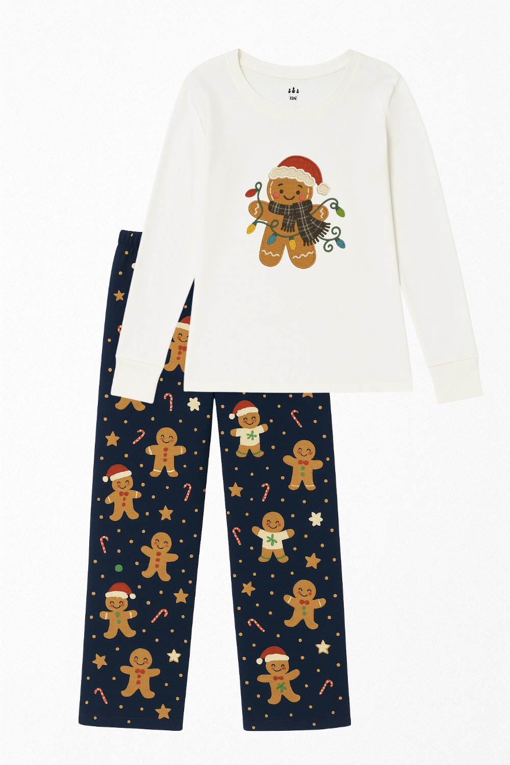 Pijama Flanel Dama. Galleta Jengibre caramelos