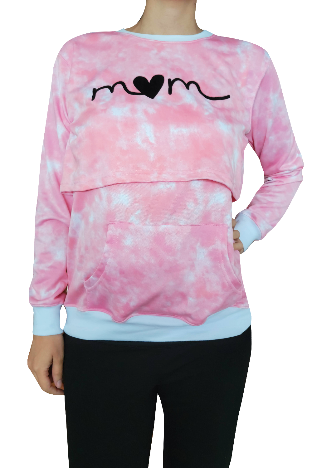 Sudadera cuello redondo Lactancia. Tie Dye rosa