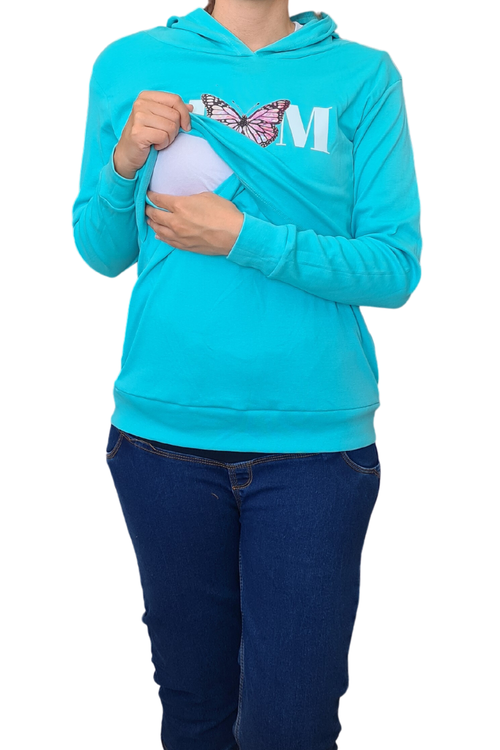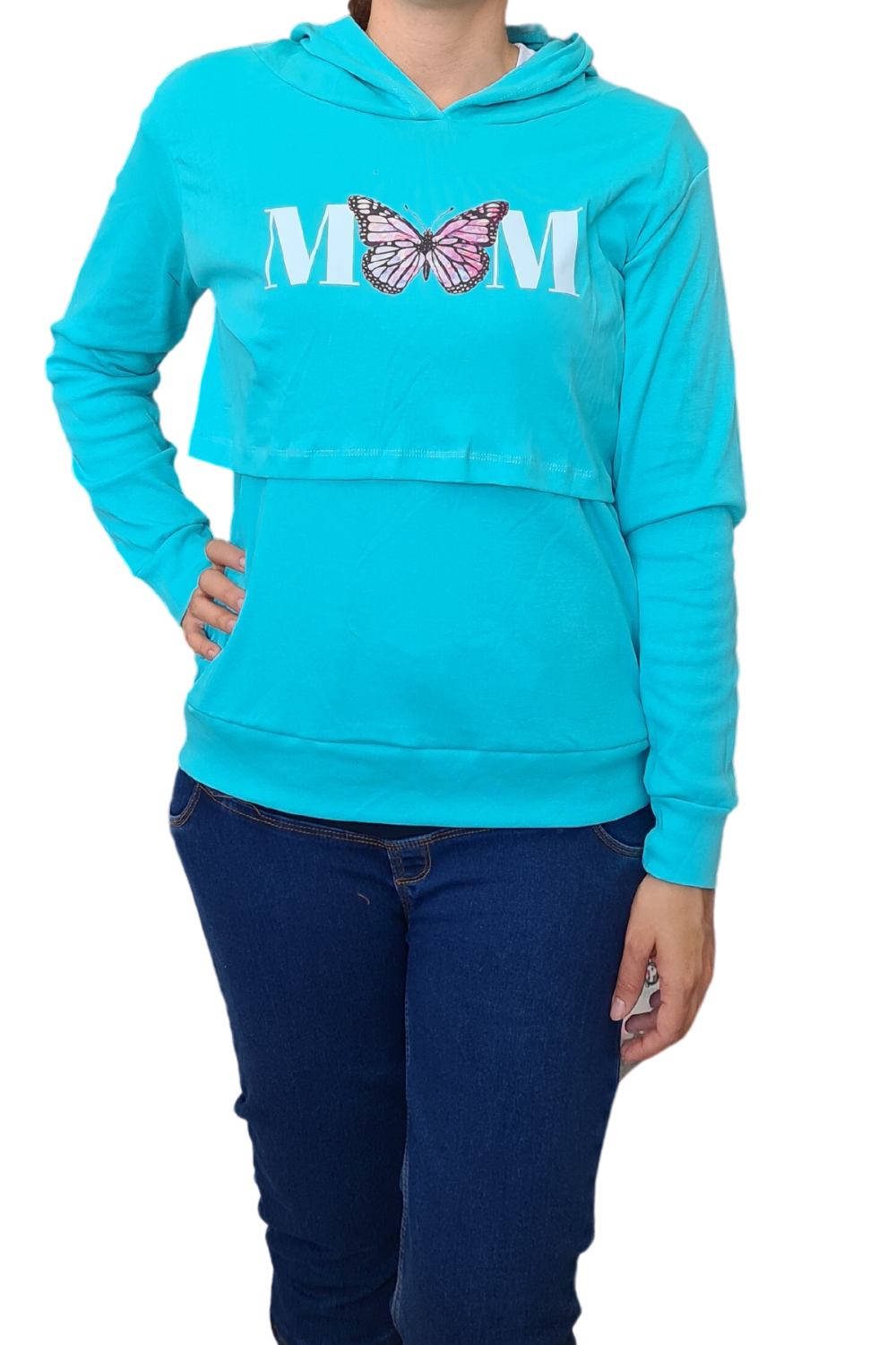 Sudadera ligera capucha estampada Lactancia. MOM mariposa